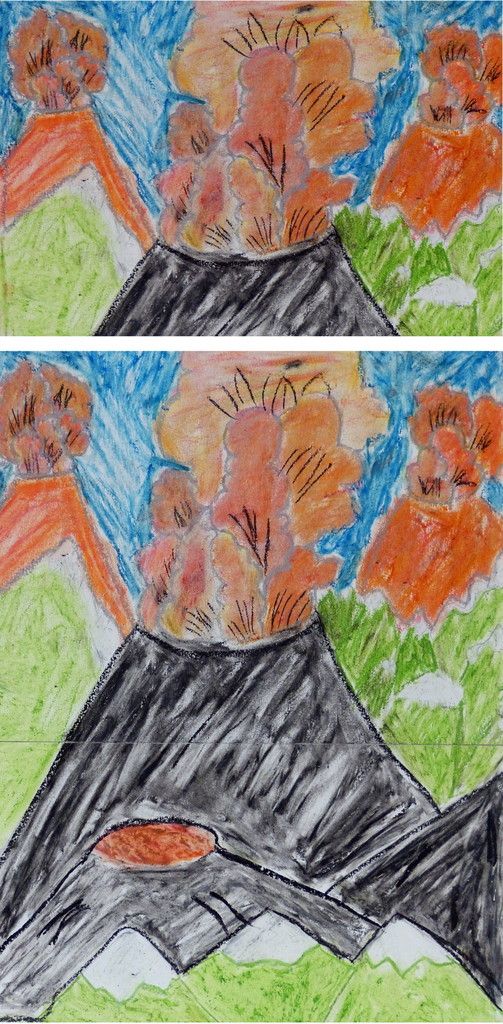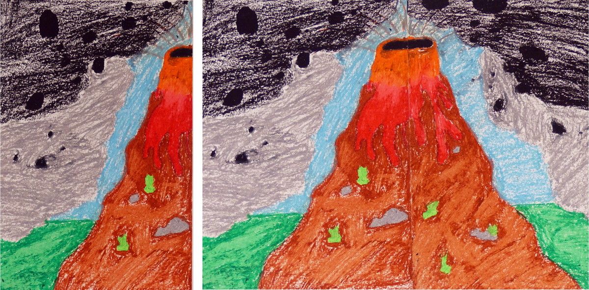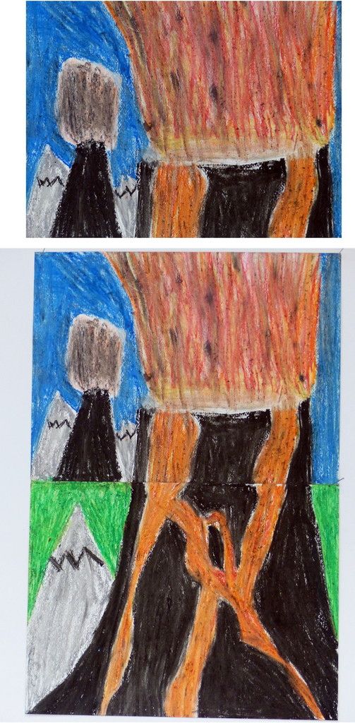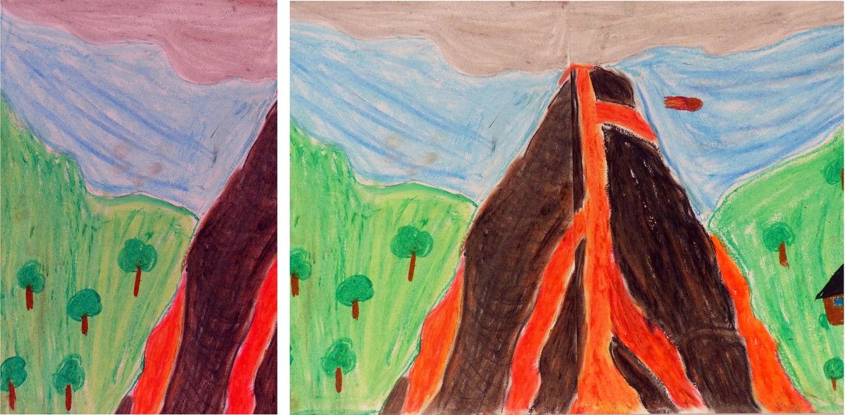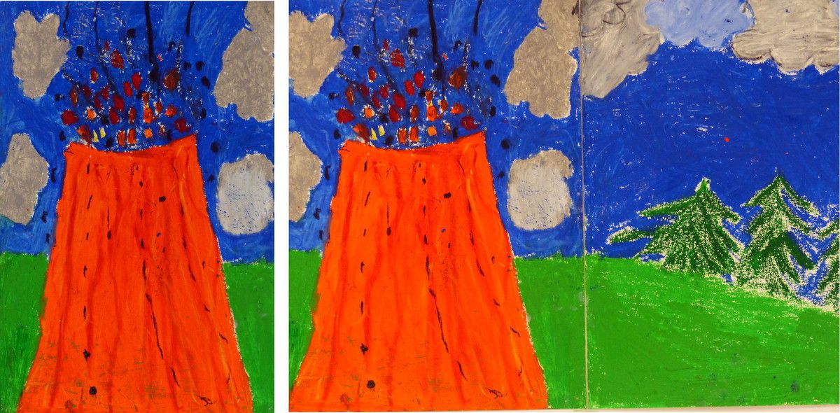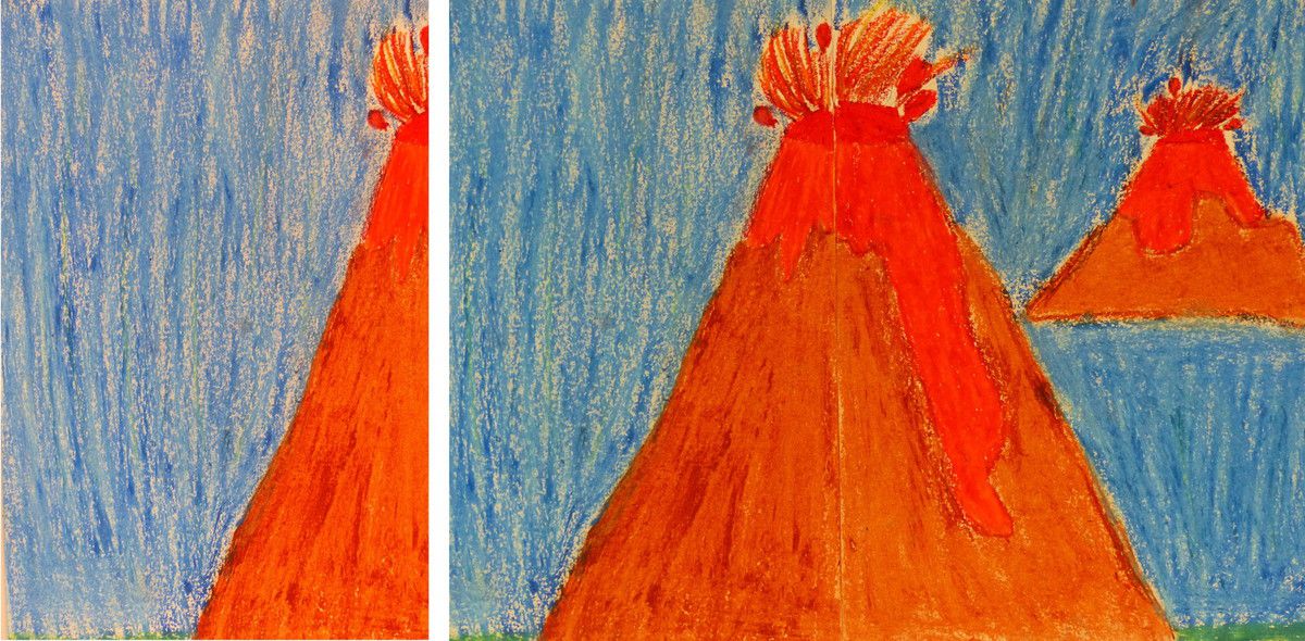 « Un volcan sur la montagne se réveille… des nuages pelotonnés de vapeur se massent dans le ciel. Et puis, le volcan éclate, explose.
