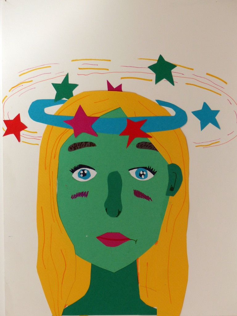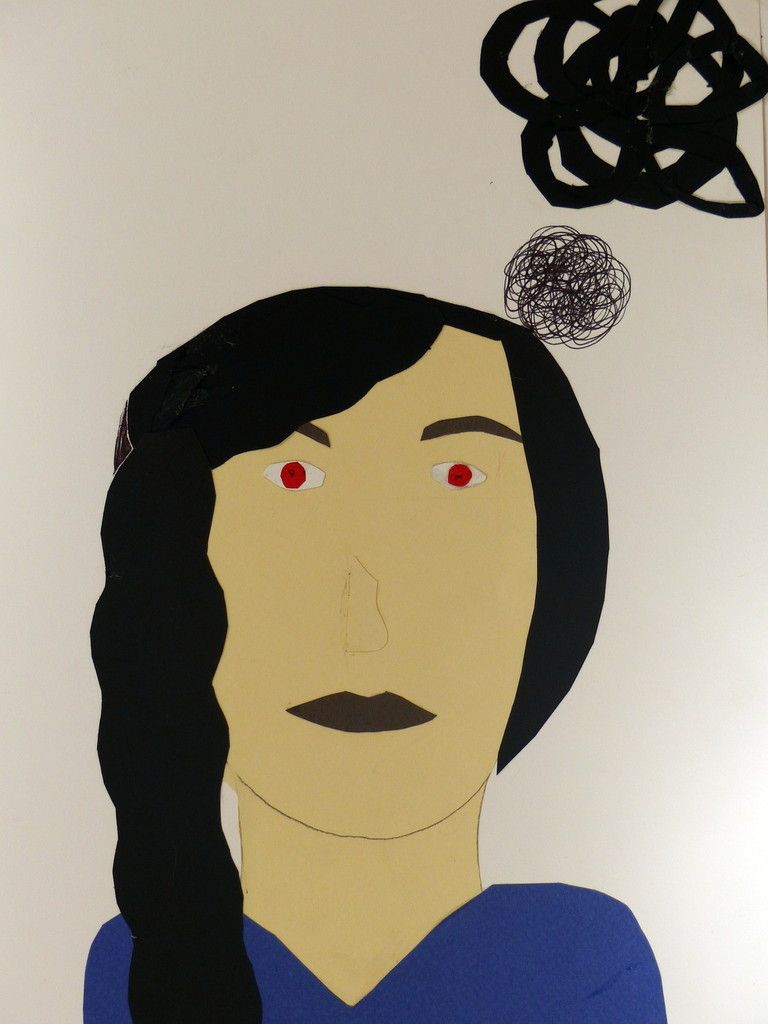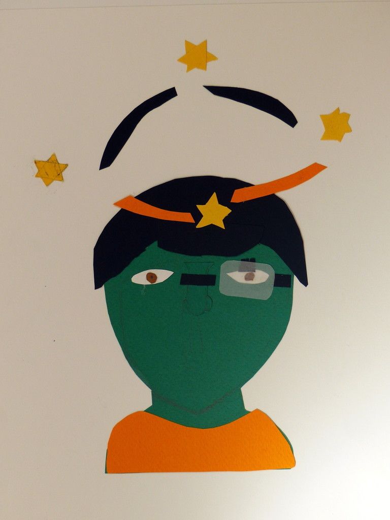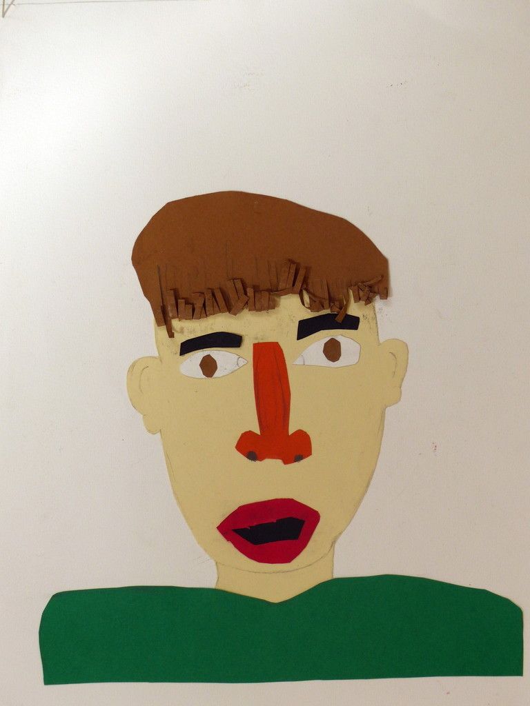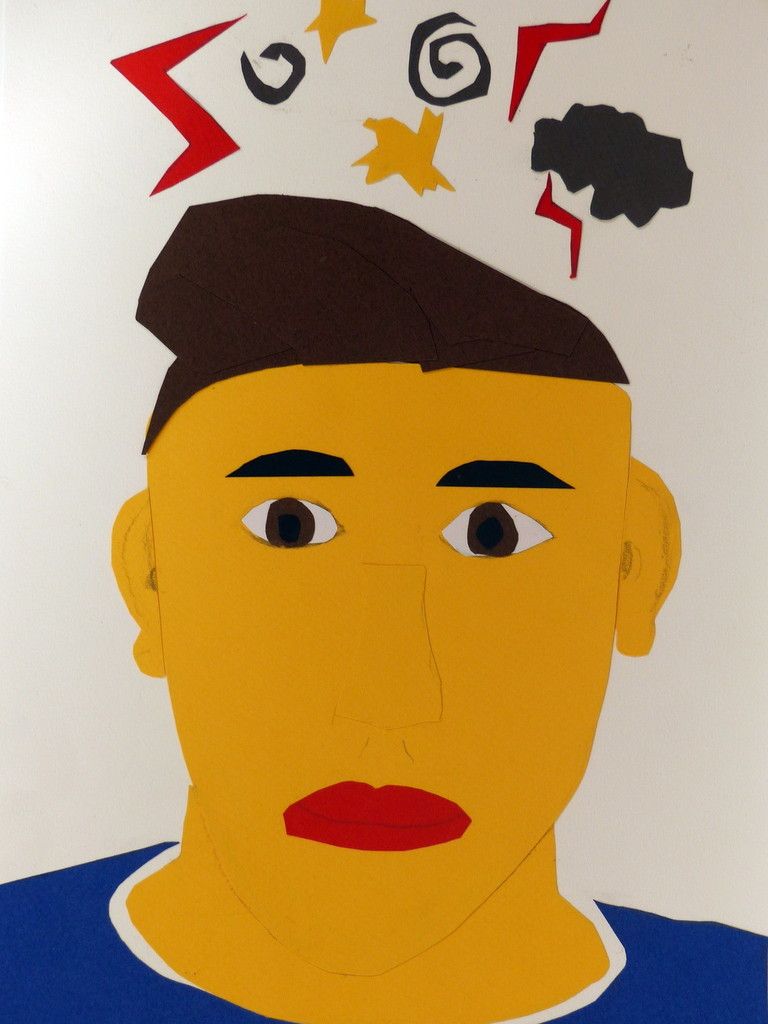 6e - Autoportrait (2) Publié le 10 février 2016 par Nadine Averink Incitation : « J’ai la tête qui tourne ».Consigne : A partir de cette phrase imaginez votre autoportrait.Technique : Collage.Support: Papier à grain 24x36 cm de couleurs différentes. Agathe . Aloïs . Ania . Brieuc . Eléonore . Ilona . Maxime H . Maxime T . Narjès . Nicolas . Paul . Pauline . Philippe . Stérenn . Thérésa .