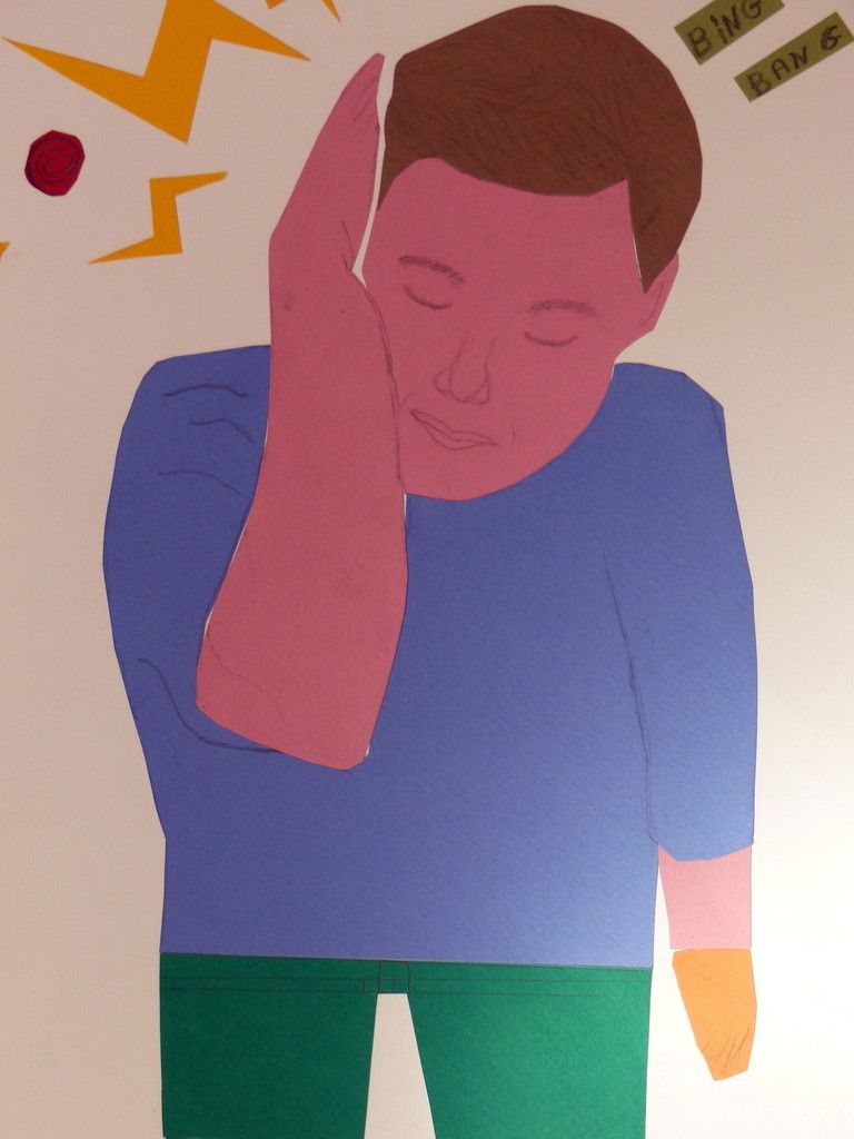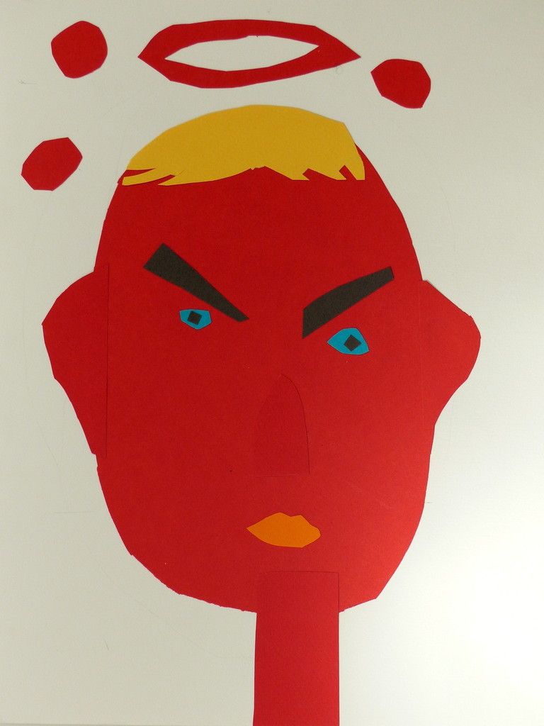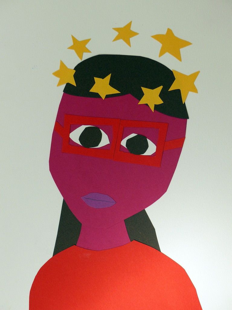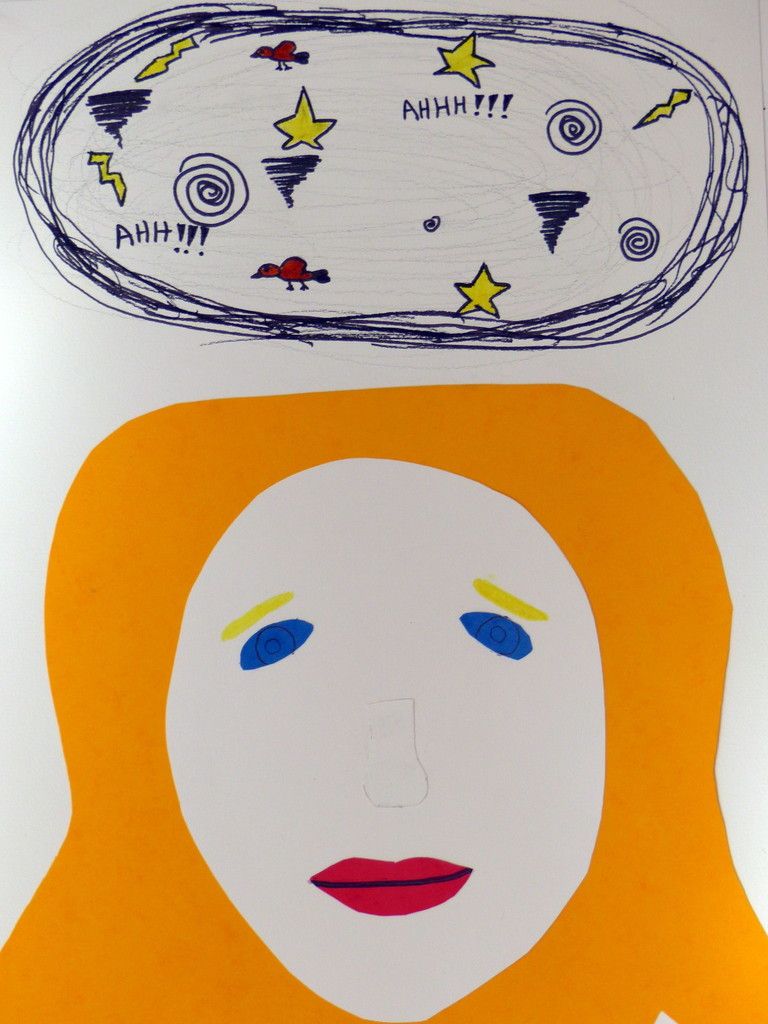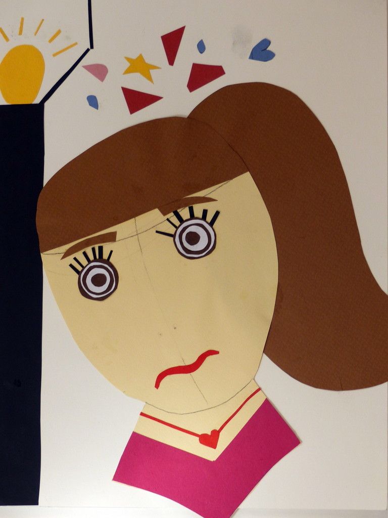 6e - Autoportrait (2) Publié le 10 février 2016 par Nadine Averink Incitation : « J’ai la tête qui tourne ».Consigne : A partir de cette phrase imaginez votre autoportrait.Technique : Collage.Support: Papier à grain 24x36 cm de couleurs différentes. Agathe . Aloïs . Ania . Brieuc . Eléonore . Ilona . Maxime H . Maxime T . Narjès . Nicolas . Paul . Pauline . Philippe . Stérenn . Thérésa .